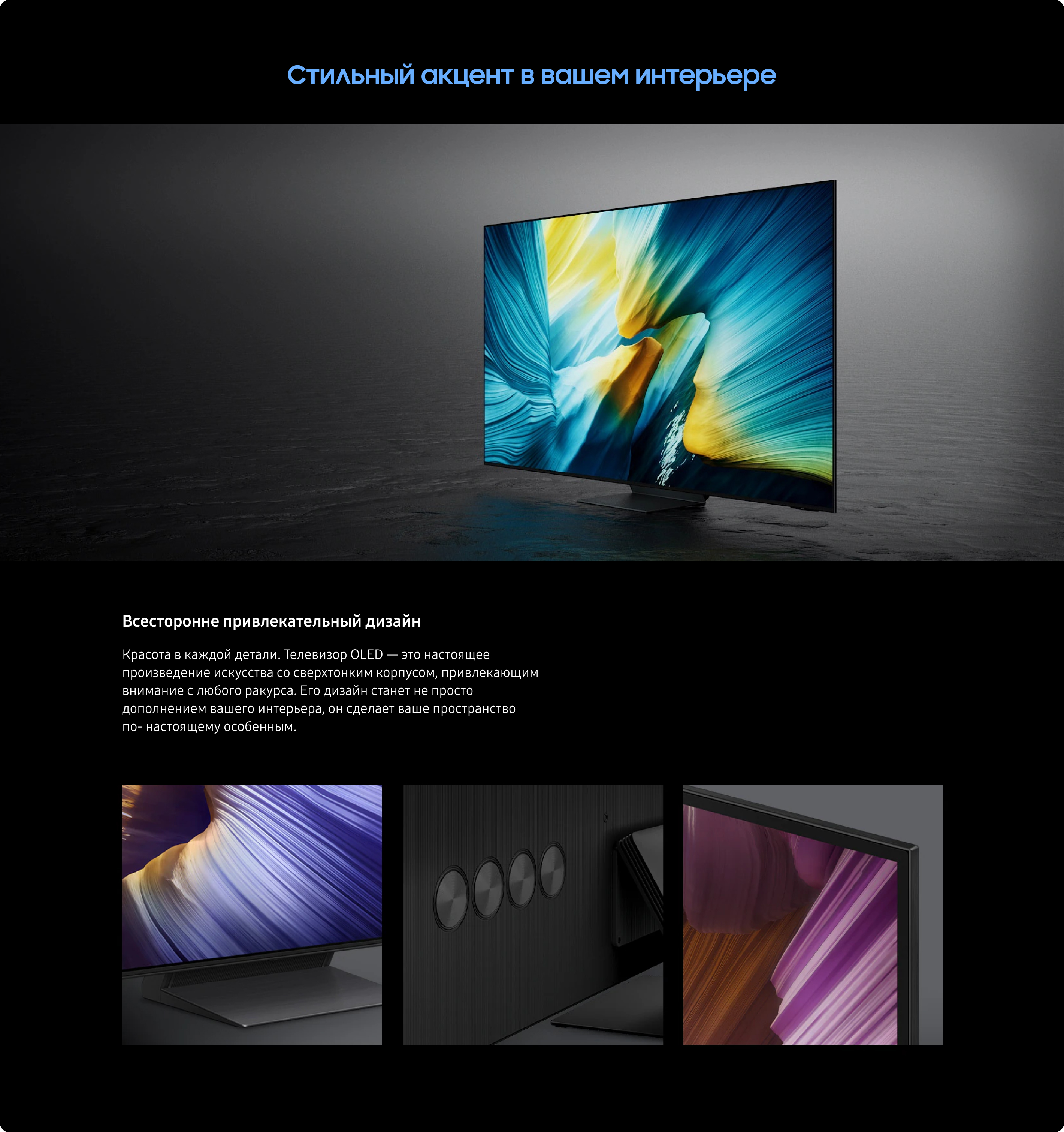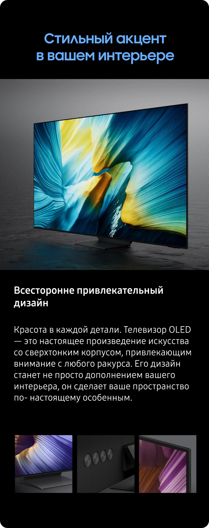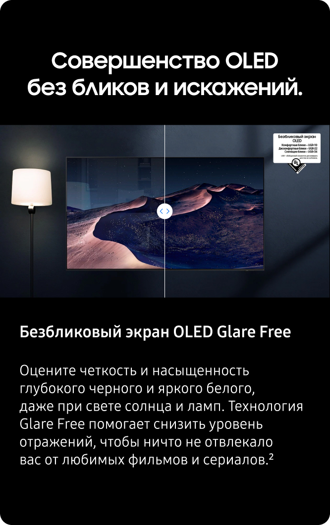 “Восхитительное качество OLED-дисплея в сочетании с антибликовым покрытием”, “Фантастические цвета OLED и глубокий чёрный цвет”, “Превосходное качество изображения при просмотре ТВ и в играх”