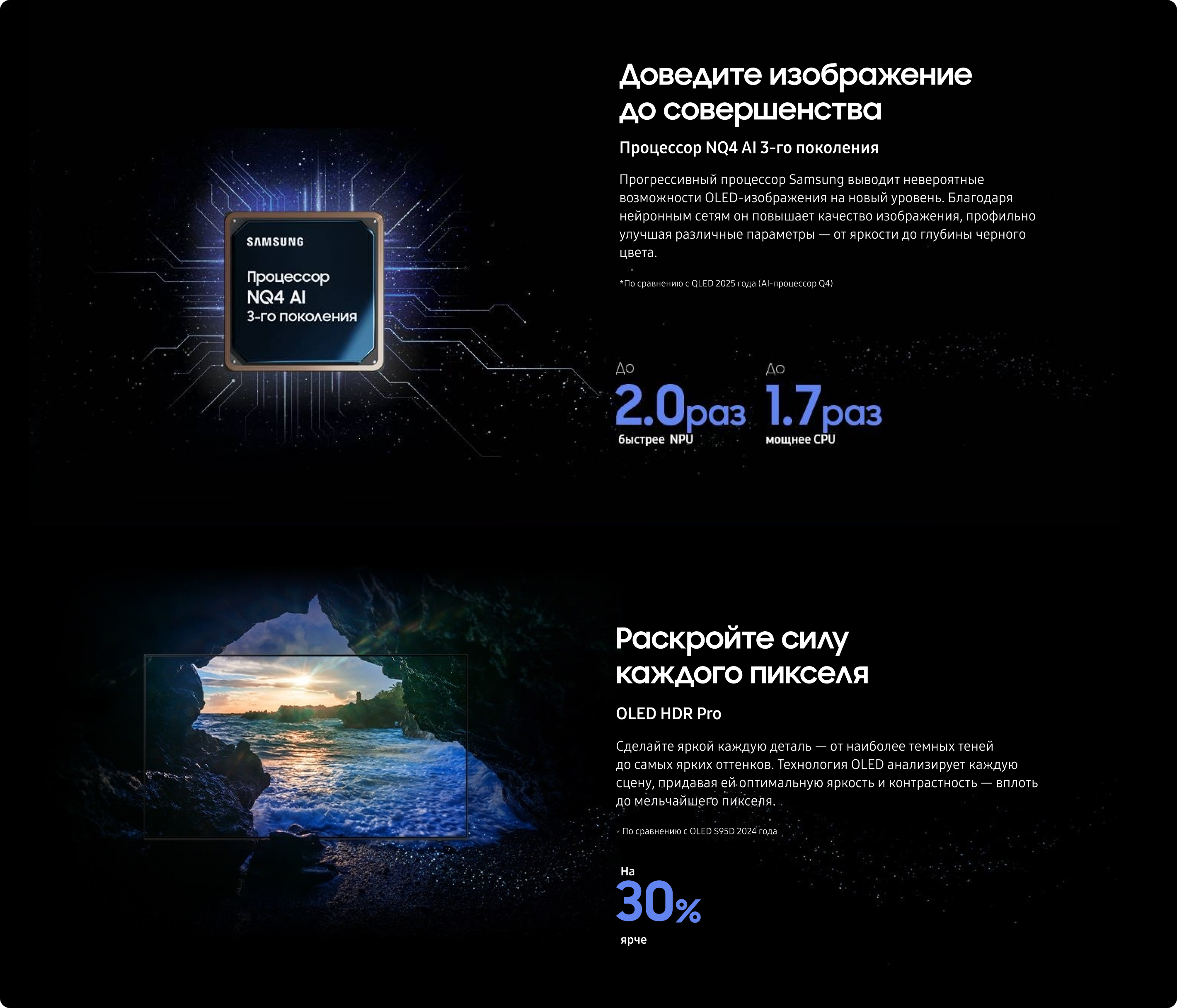 2. Технология 8K AI Upscaling Pro: эффект от просмотра может отличаться в зависимости от типа контента и формата. 8K AI Upscaling может не применяться при подключении к ПК и в игровом режиме.
